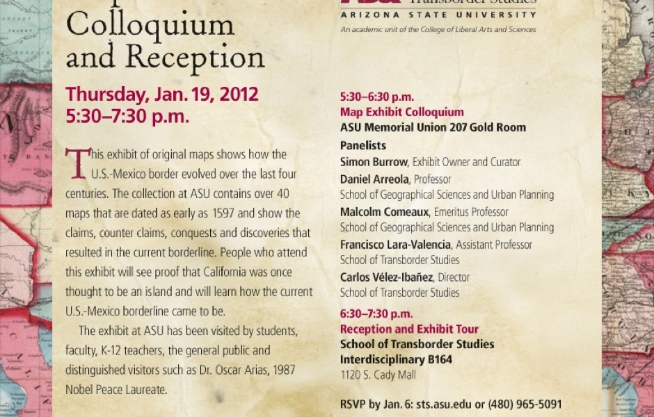The Changing Boundaries Map Exhibit at Arizona State University is closing on February 10, 2012. The next show is in at the CECUT museum in Tijuana Fronteras Cambientes opens on February 24, 2012.